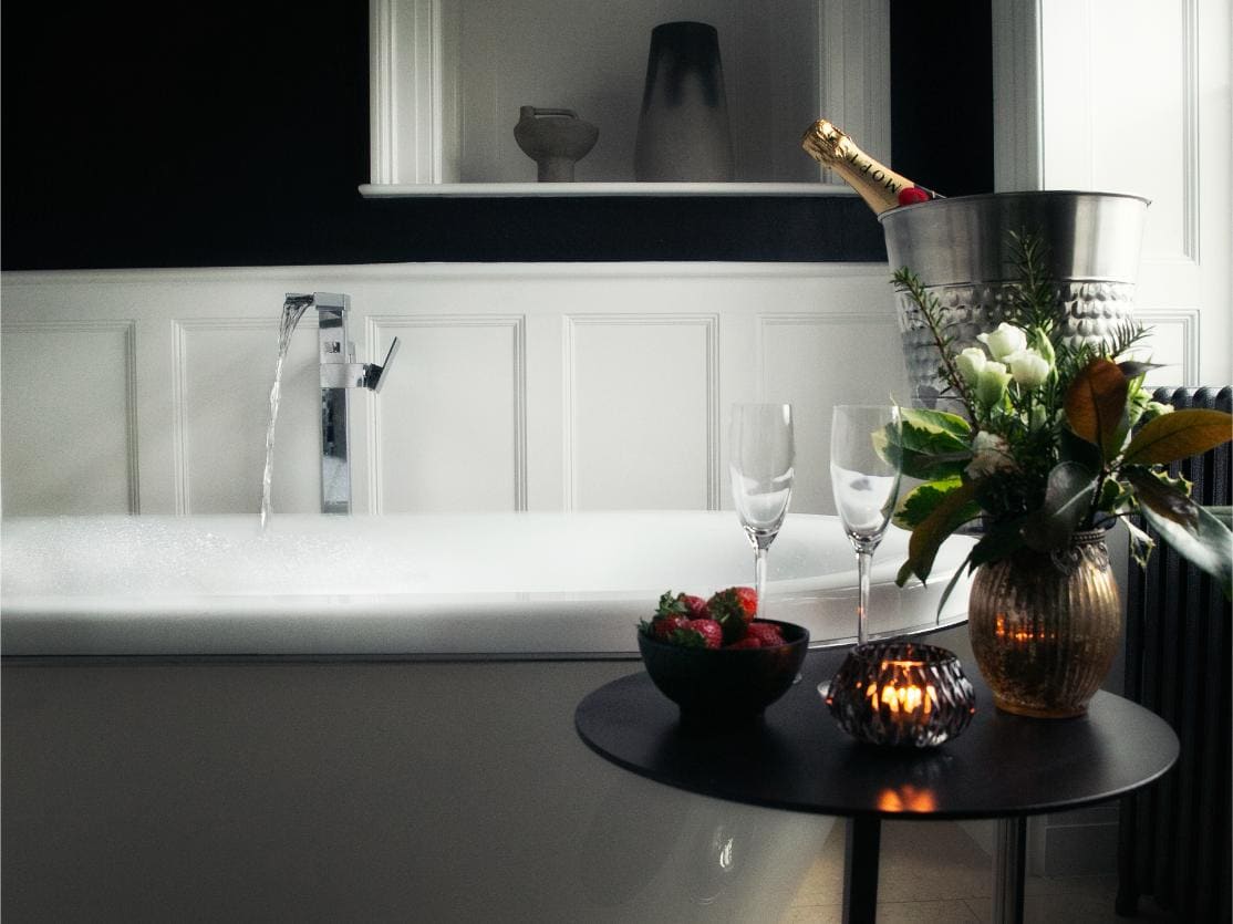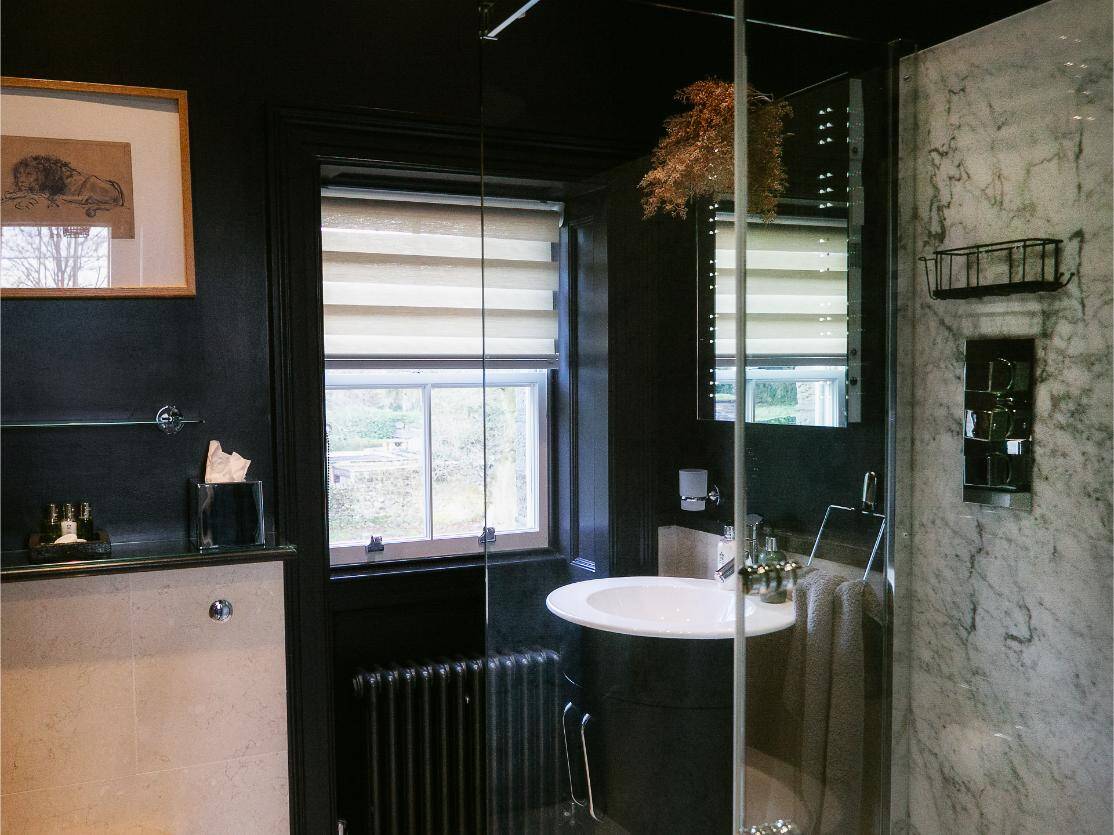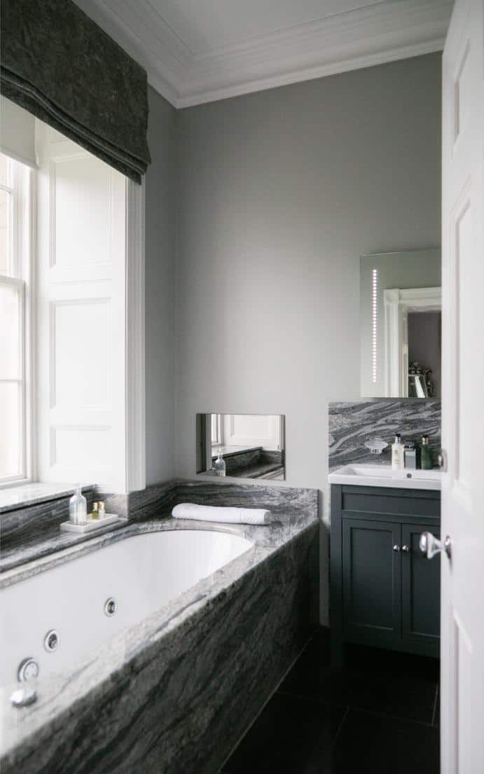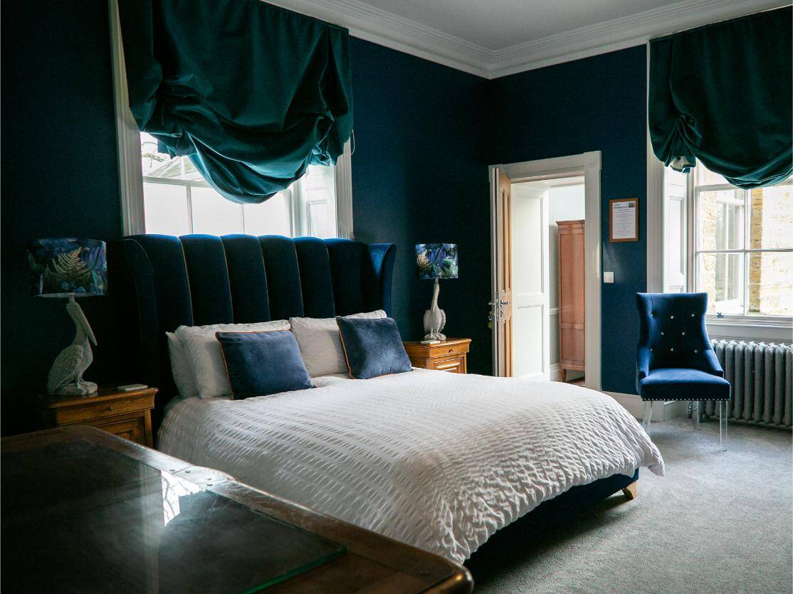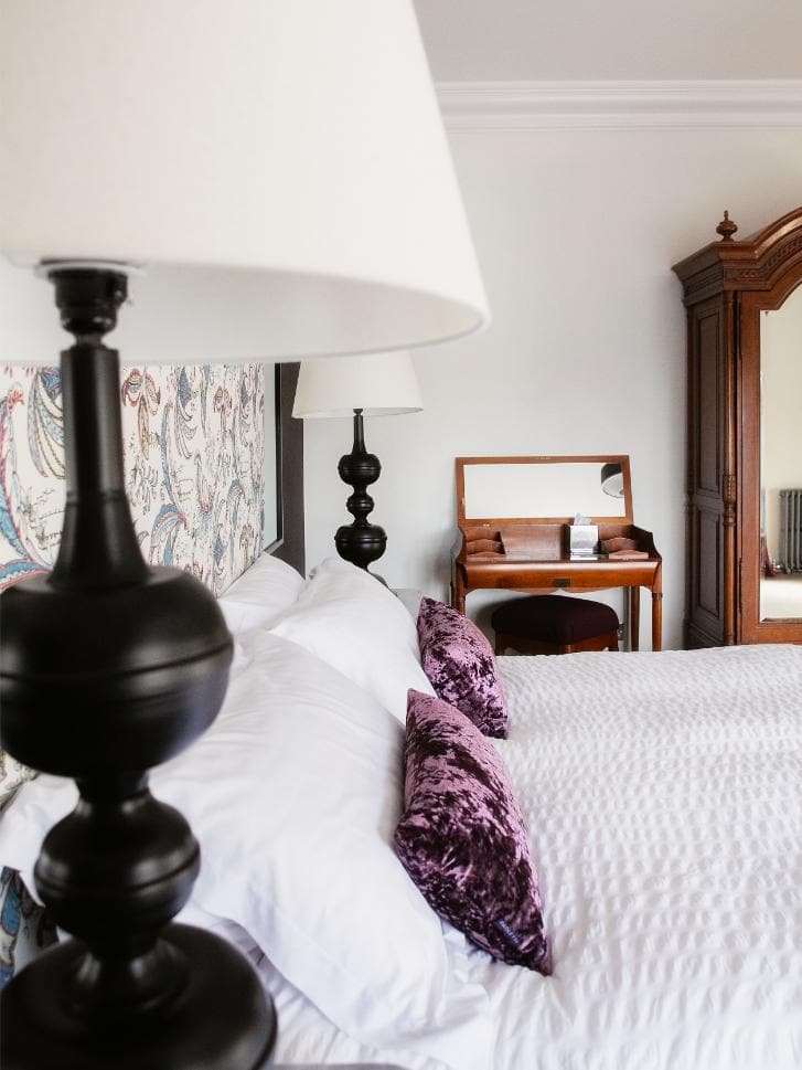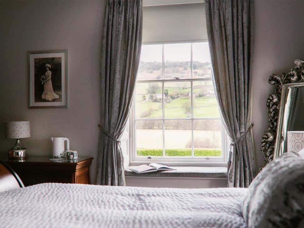 A classic and gracious room with jacuzzi bath and far-reaching hill views, balancing traditional charm with serene, contemporary comfort.