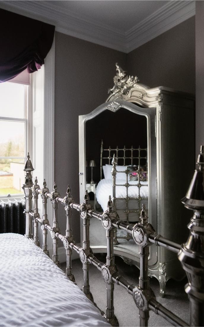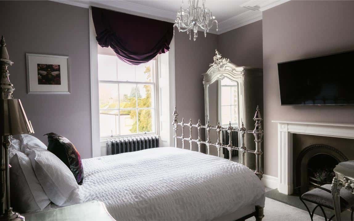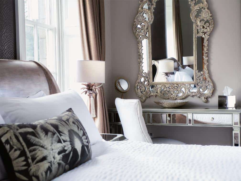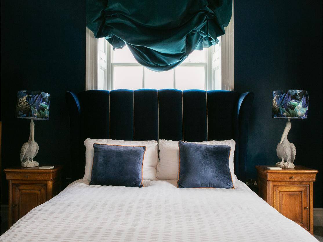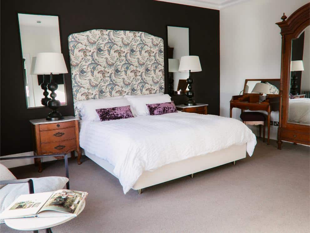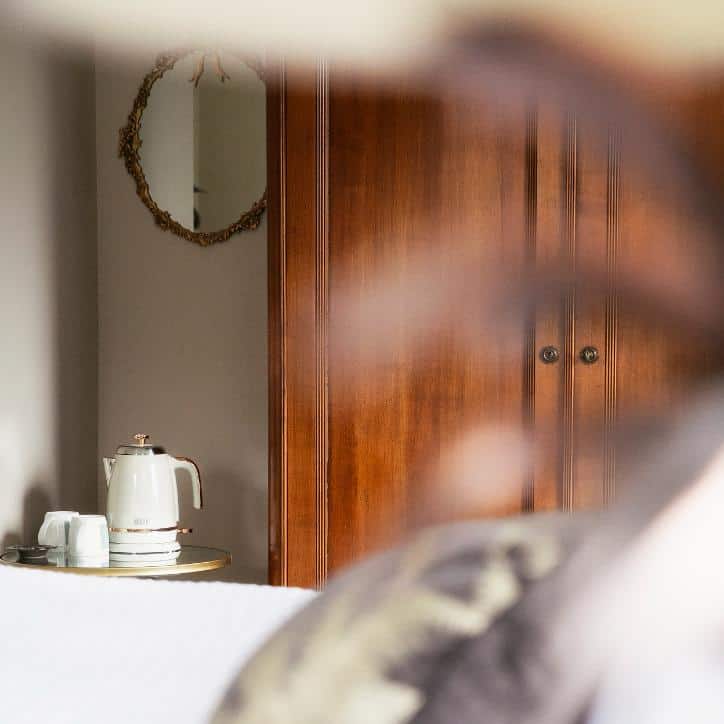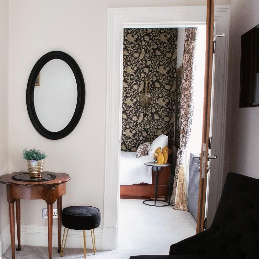 A classic and gracious room with jacuzzi bath and far-reaching hill views, balancing traditional charm with serene, contemporary comfort.
