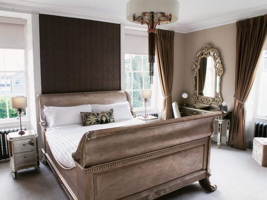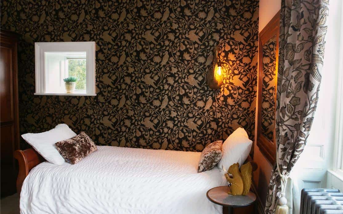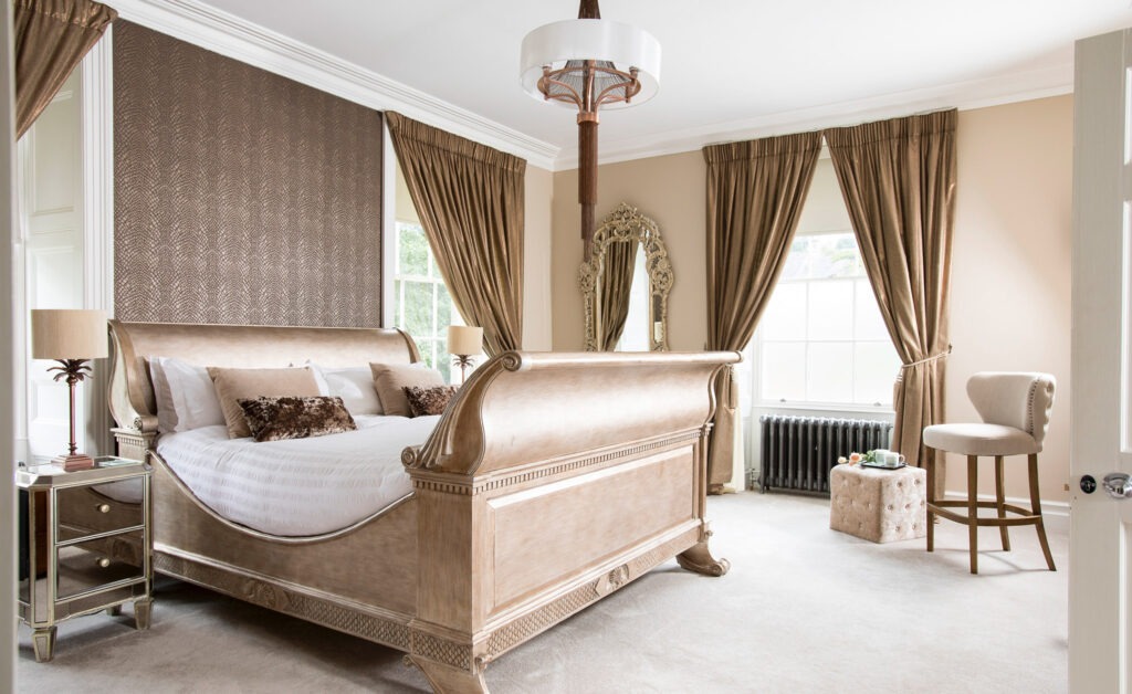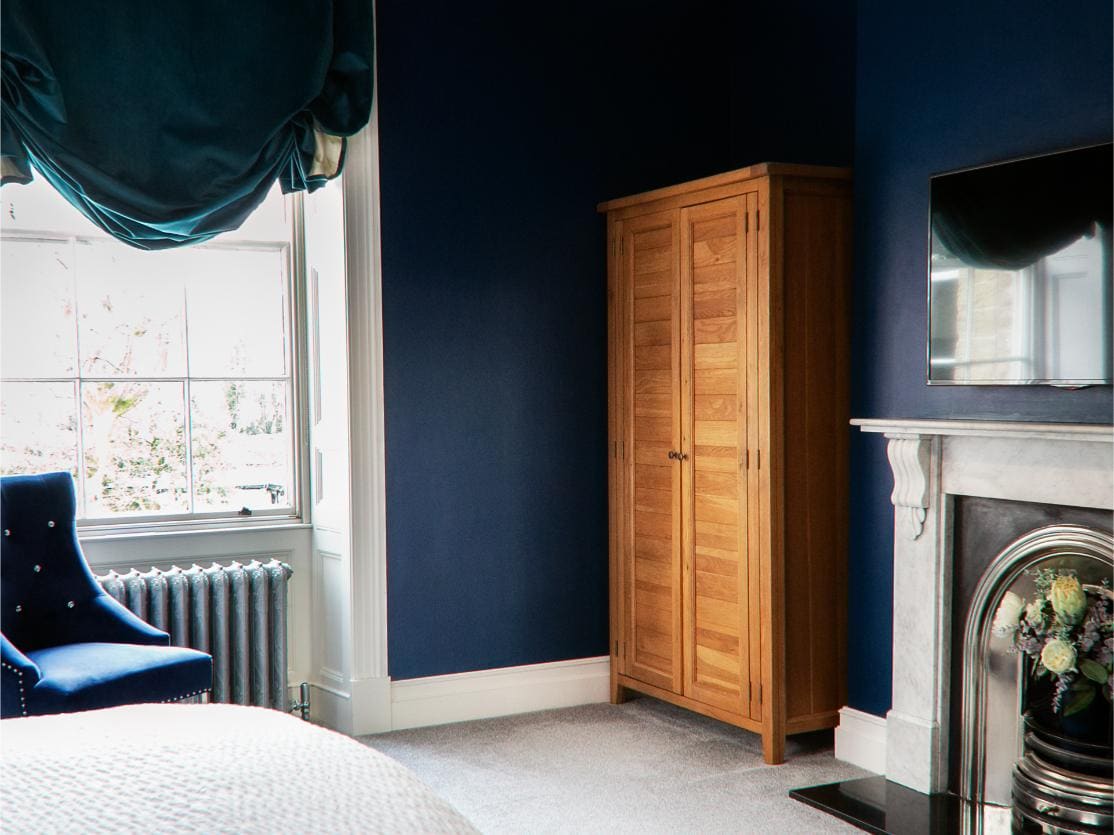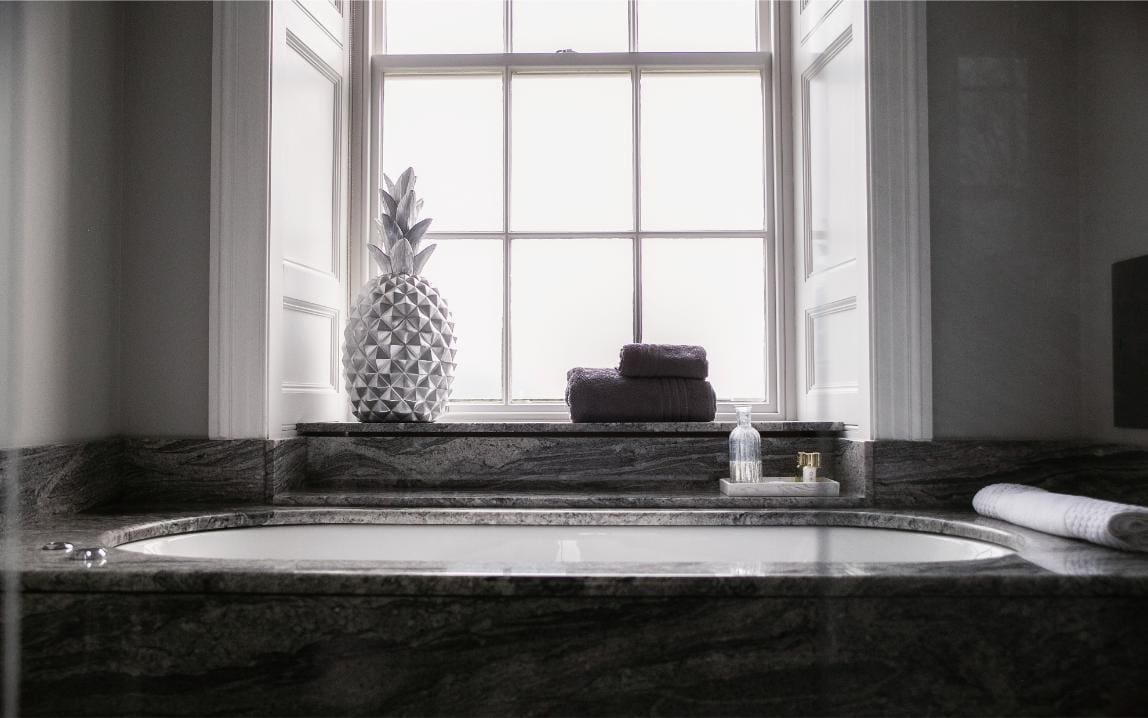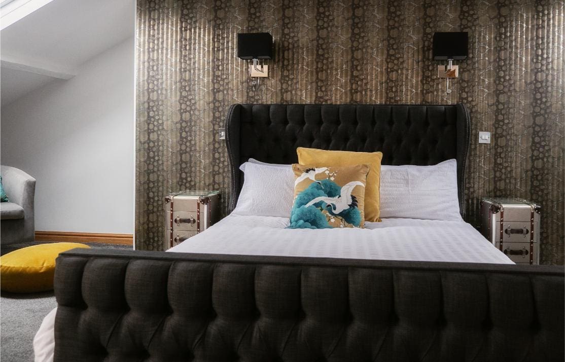 A classic and gracious room with jacuzzi bath and far-reaching hill views, balancing traditional charm with serene, contemporary comfort.