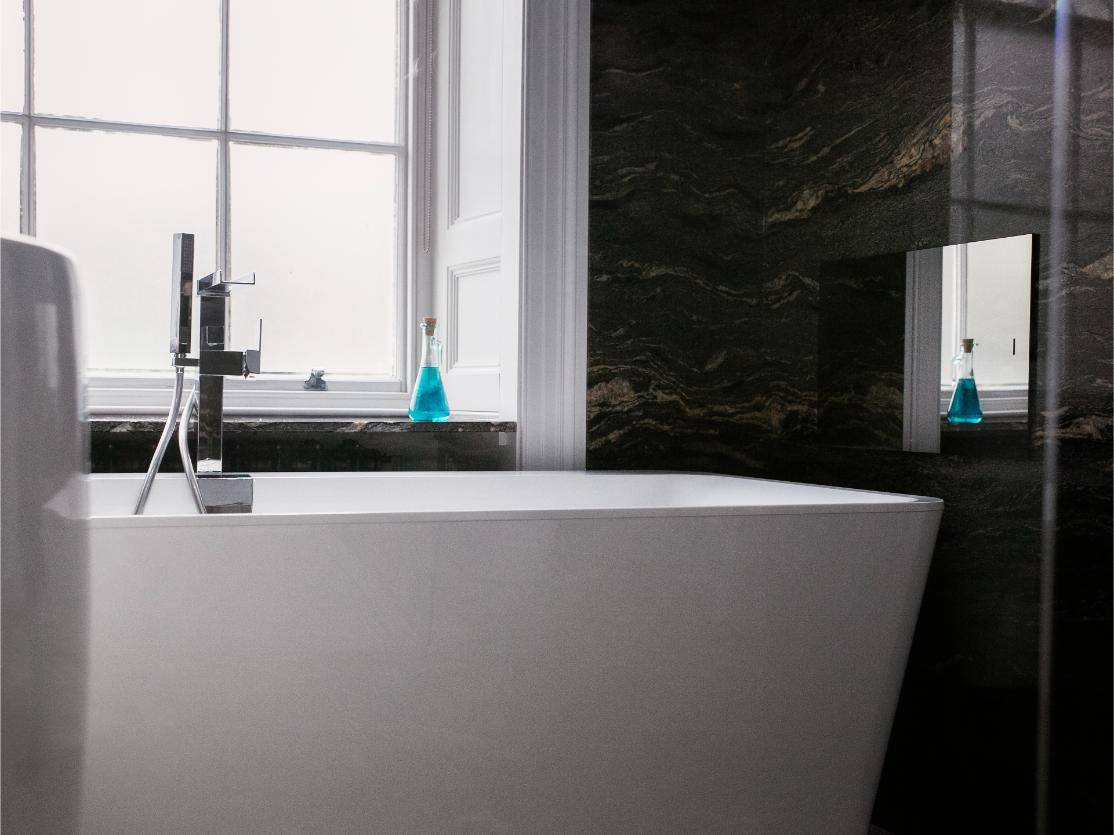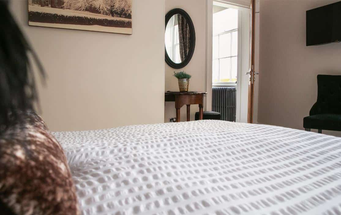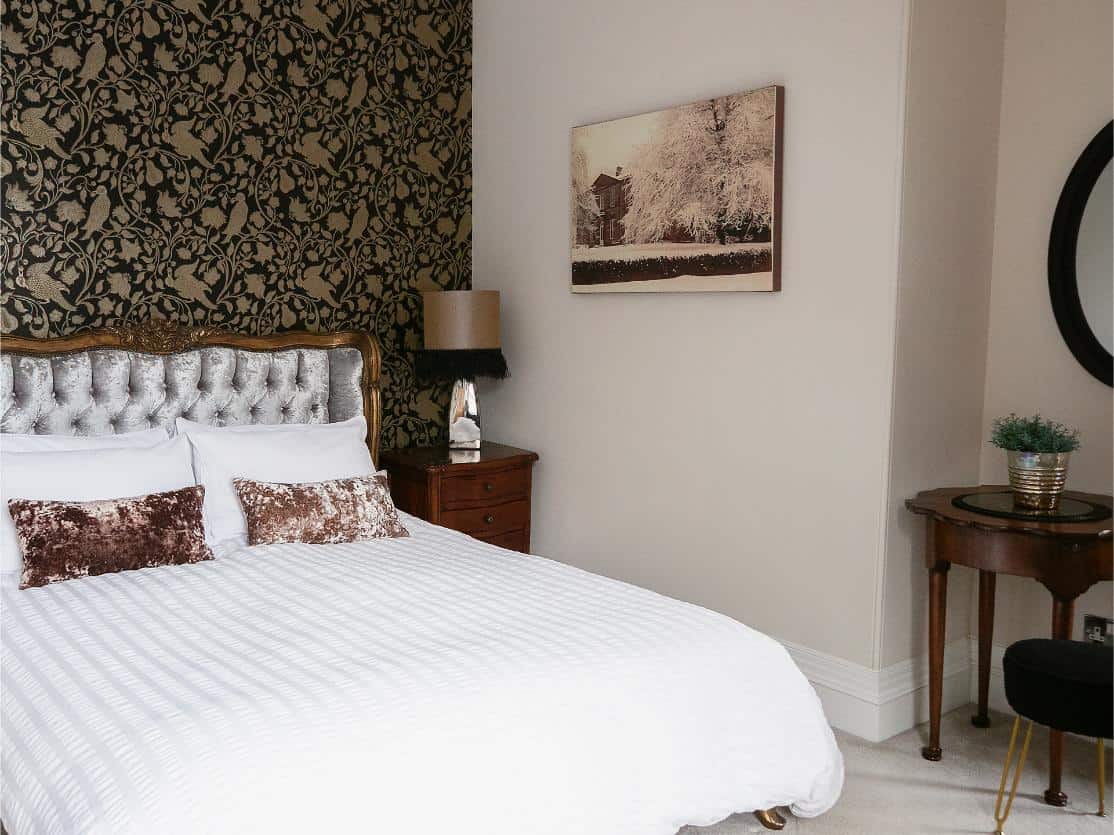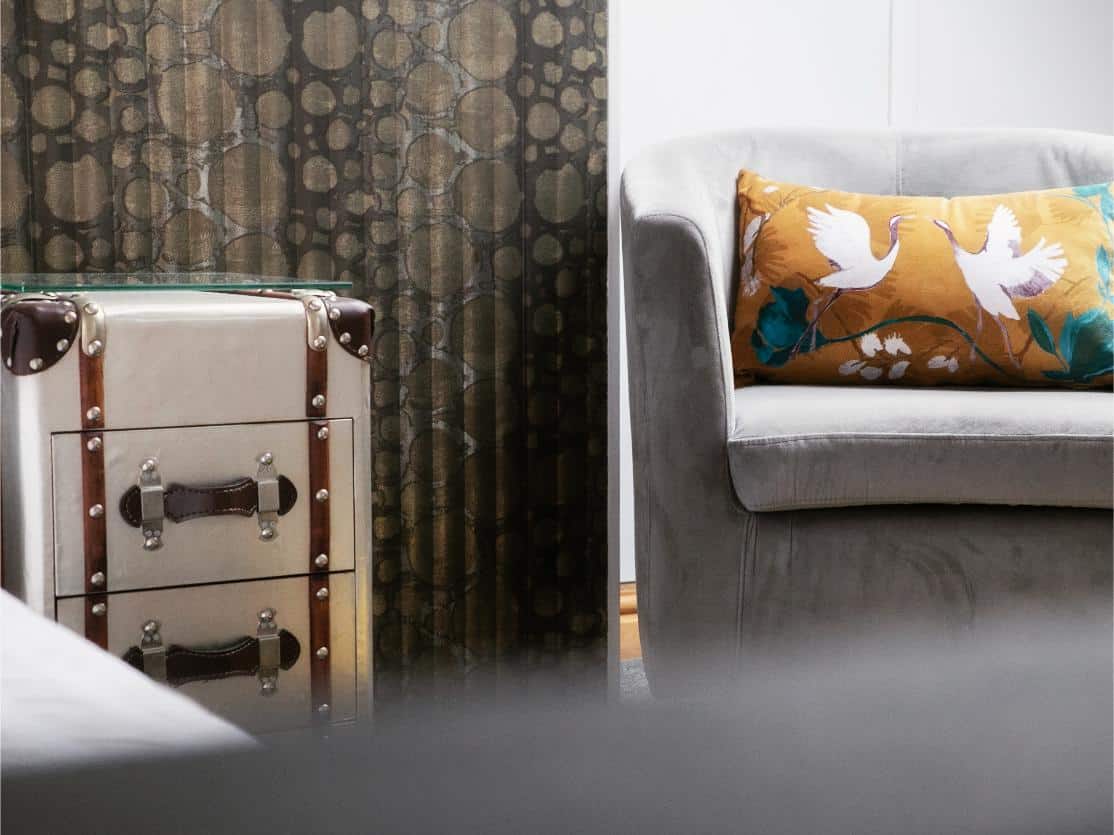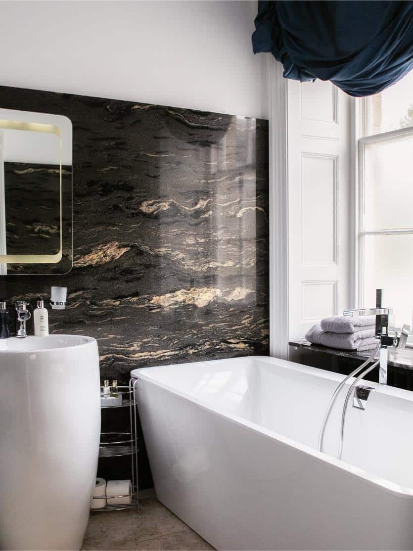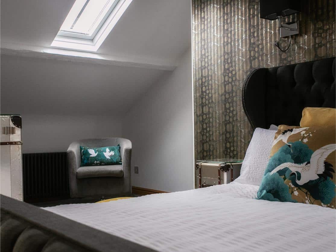 A classic and gracious room with jacuzzi bath and far-reaching hill views, balancing traditional charm with serene, contemporary comfort.